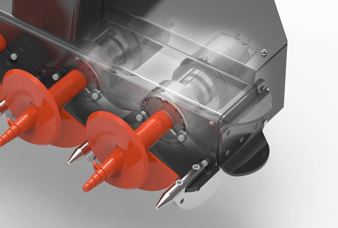 Viteza de rotație a șuruburilor este relativ mică, de 300 rot/min – lucru ce reduce nivelul uzurii.